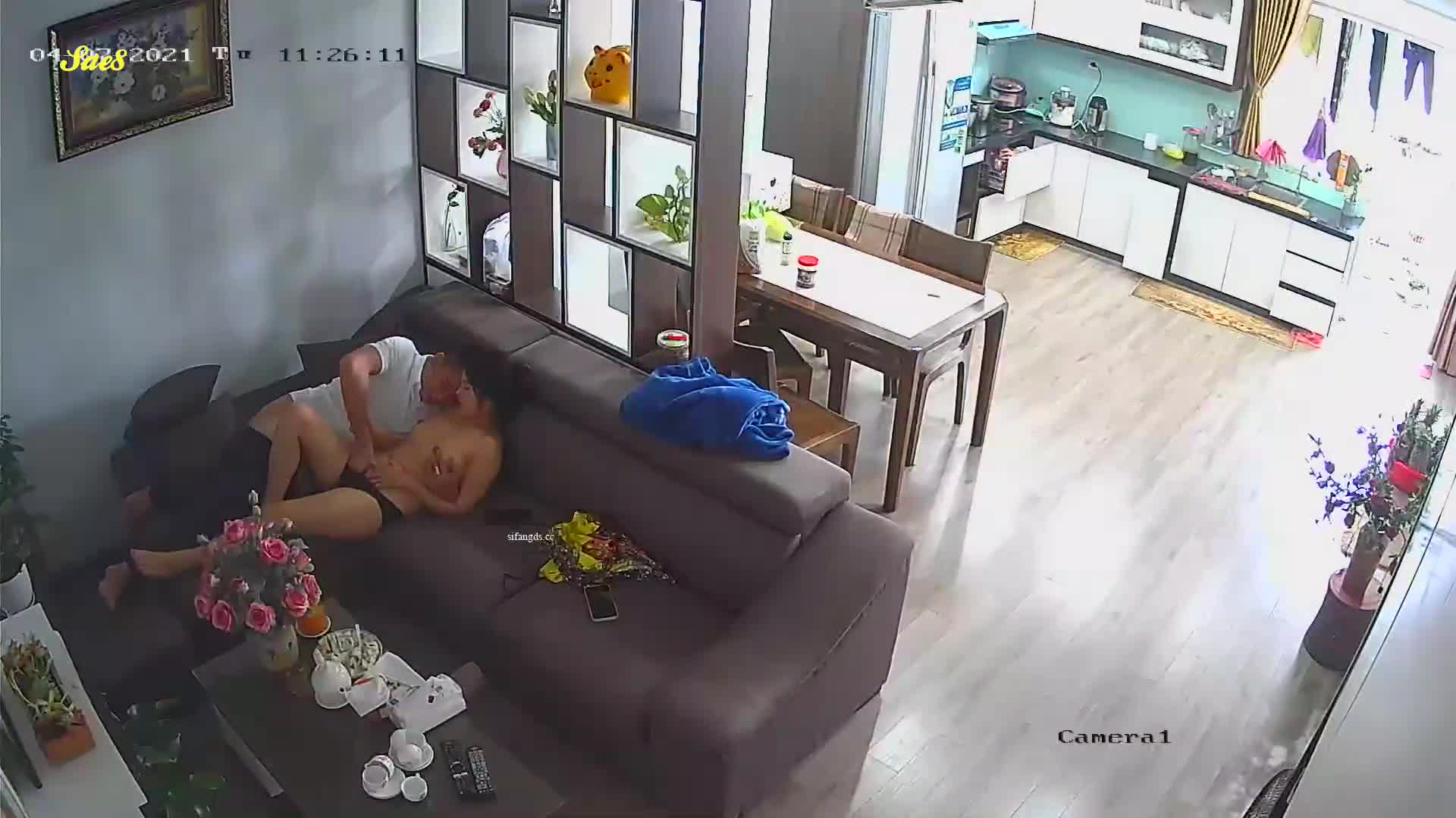 老婆正做着饭就被拉到沙发干了一炮