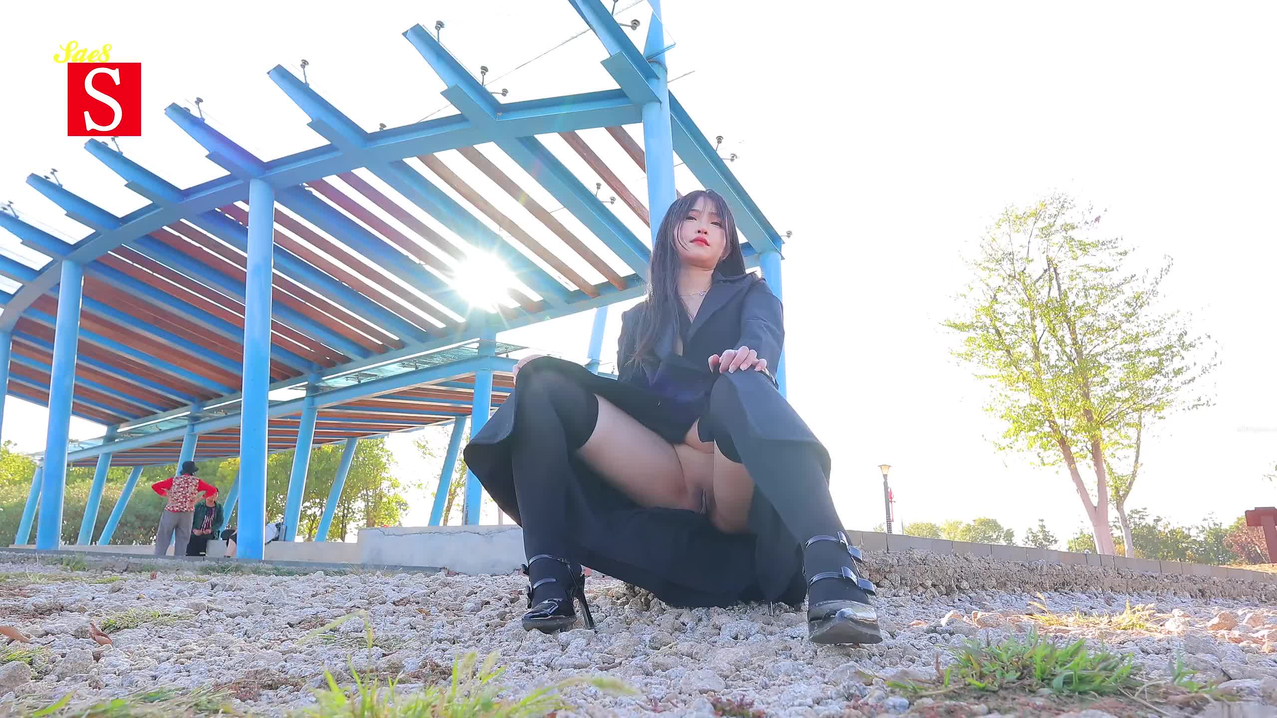 国模黄X户外公园身后坐着大爷大妈大白天露出。